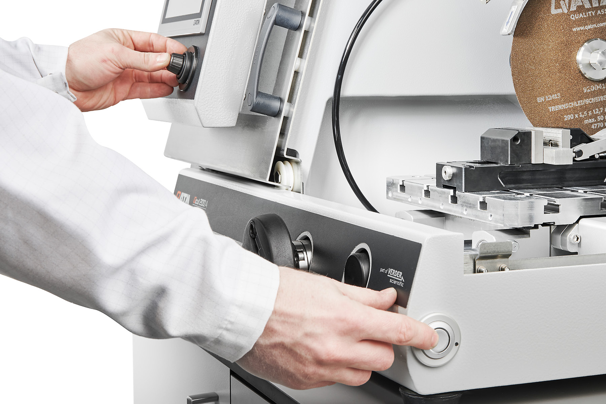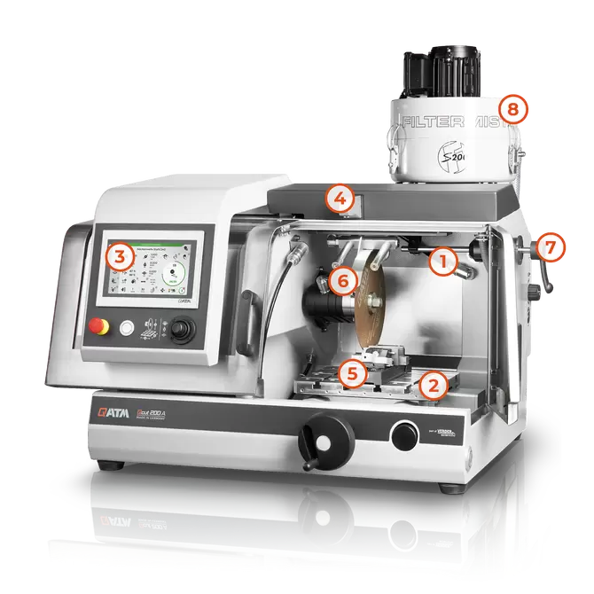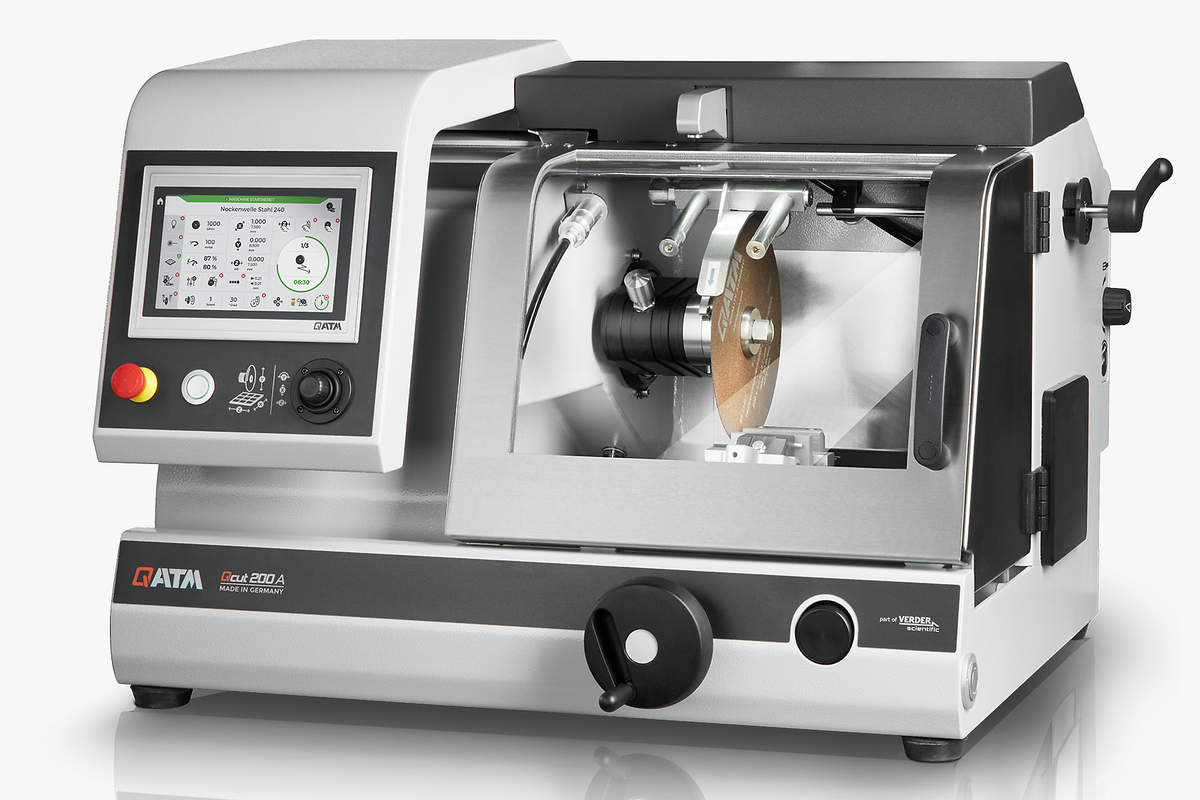 Qcut 200 A to kompaktowa, precyzyjna przecinarka metalograficzna, oferująca maksymalną elastyczność przy ograniczonym zapotrzebowaniu na przestrzeń dzięki aż trzem automatycznym osiom (X, Y, Z). Można stosować tarcze o średnicy do Ø 203 mm (8″) i wyposażyć urządzenie w liczne funkcje cięcia, a dzięki modułowej konstrukcji — dostosować je do indywidualnych potrzeb, w tym różnych systemów mocowania.