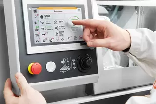 Komora tnąca jest czyszczona automatycznie poprzez spiralne dysze. Funkcję można włączyć ręcznie lub ustawić automatyczne uruchamianie po cięciu (również aktywne podczas pracy).