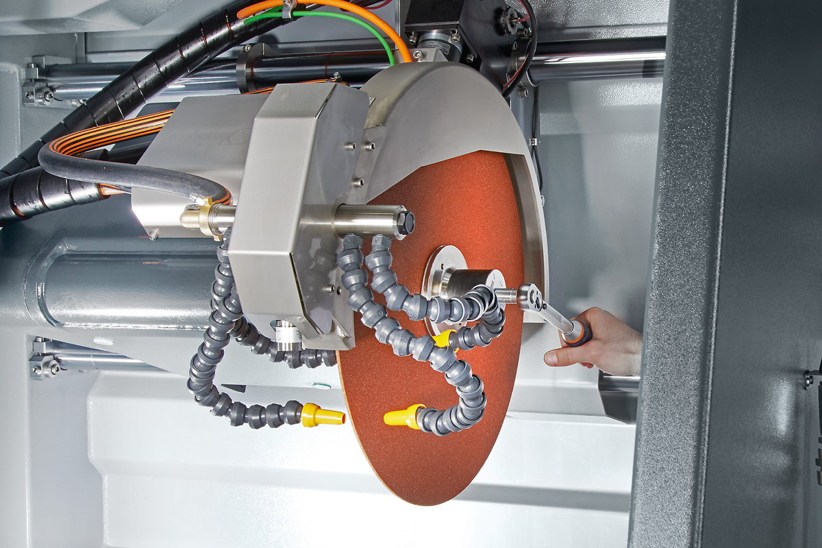 Optymalny dostęp do dużej komory cięcia z blokadą bezpieczeństwa, która uniemożliwia otwarcie drzwi przy pracującej tarczy.