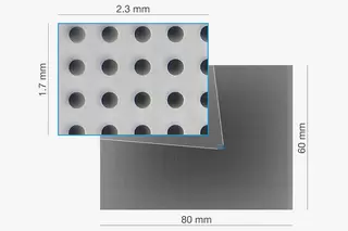 35-krotny zoom łączonySystem optyczny Qeye umożliwia zmianę pola widzenia między 80 x 60 mm a 2,3 x 1,7 mm. Dzięki optycznemu oraz cyfrowemu powiększeniu uzyskiwana jest 35-krotne powiększenie. Umożliwia to użytkownikowi dostrzeganie najmniejszych detali, zachowując jednocześnie pełny przegląd obrazu całej próbki.