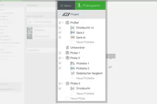 Profesjonalne zarządzanie danymiKorzyści z wyraźnie uporządkowanego zarządzania partiami, efektywnego wykorzystania szablonów w różnych projektach testowych, dobrze zorganizowanych wyników pomiarów i wszystkich informacji o zadaniach w tle. Po utworzeniu, szablony otrzymują wszystkie niezbędne informacje o badanych próbkach, w tym metody testowania, oznaczenia i informacje o użytkownikach.
