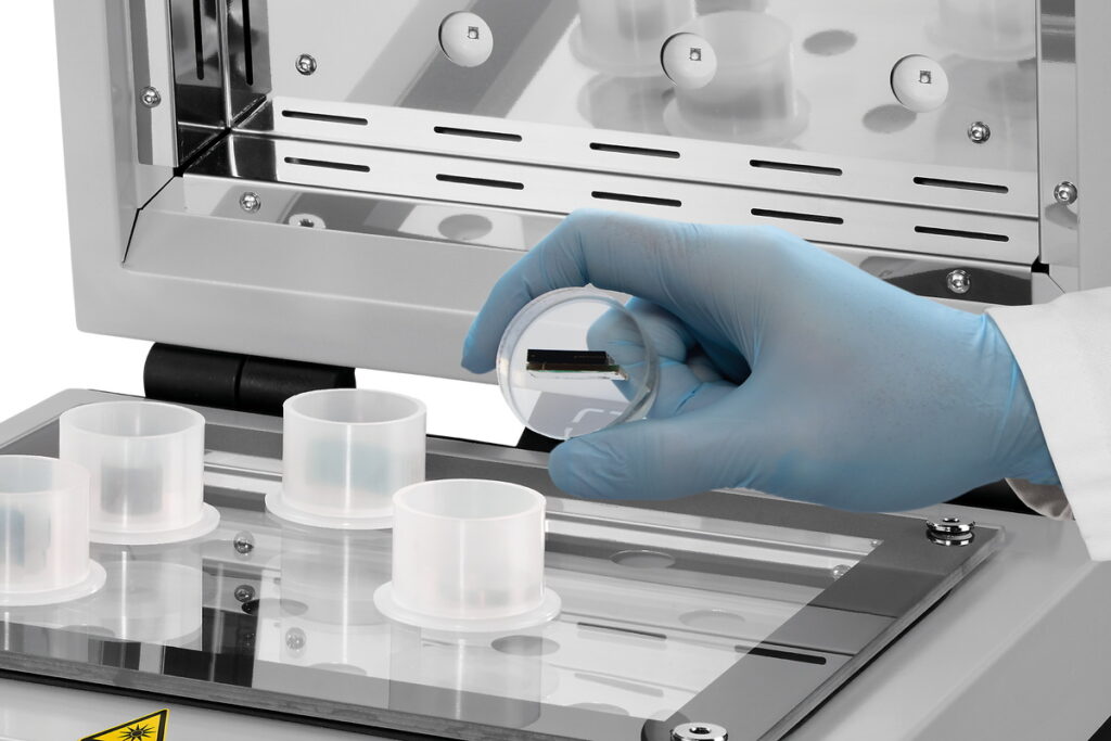 Solidna technologiaZintegrowana wentylacja zapewnia niskie temperatury polimeryzacji w zakresie około 70–90 °C. Solidna konstrukcja z proszkowaną obudową aluminiową i wysokiej jakości komponentami umożliwia wykonywanie dużych ilości próbek. Pokrywa wyposażona jest w amortyzowane zawiasy, co pozwala na jej delikatne zamknięcie.